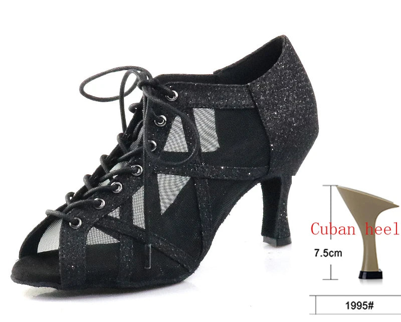 Black diamond inlaid Latin dance shoes, fish billed women's high top dance shoes, cool boots, ball and social dance shoes, salsa