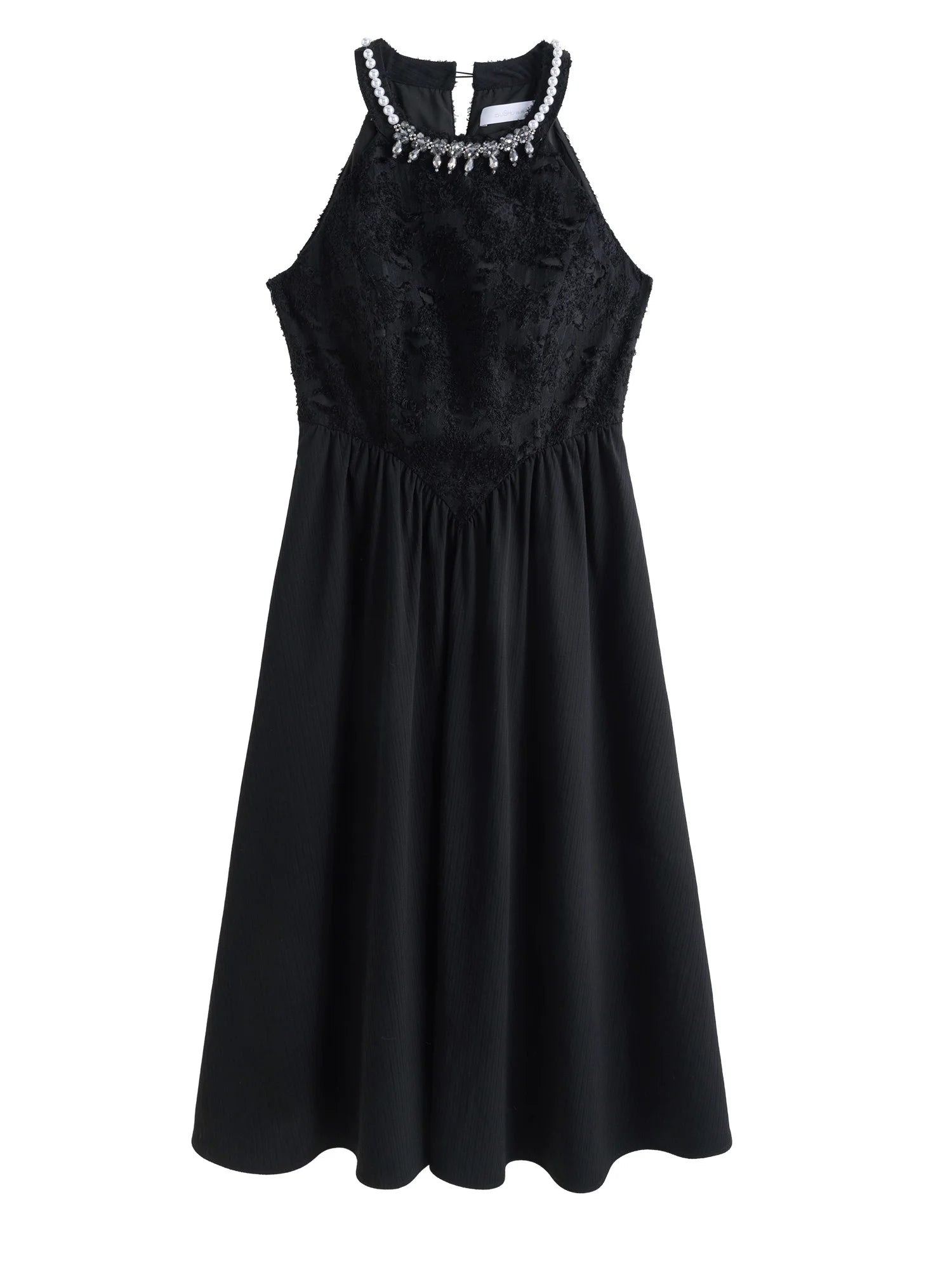 DUSHU Women Short Tweed Jacket Black Temperament Coat Sleeveless Halter Neck Dress Office Lady Autumn Set 24DS83339+24DS83340