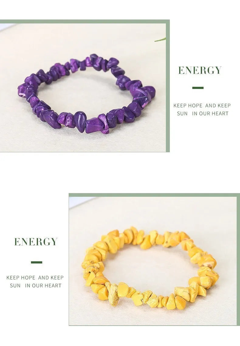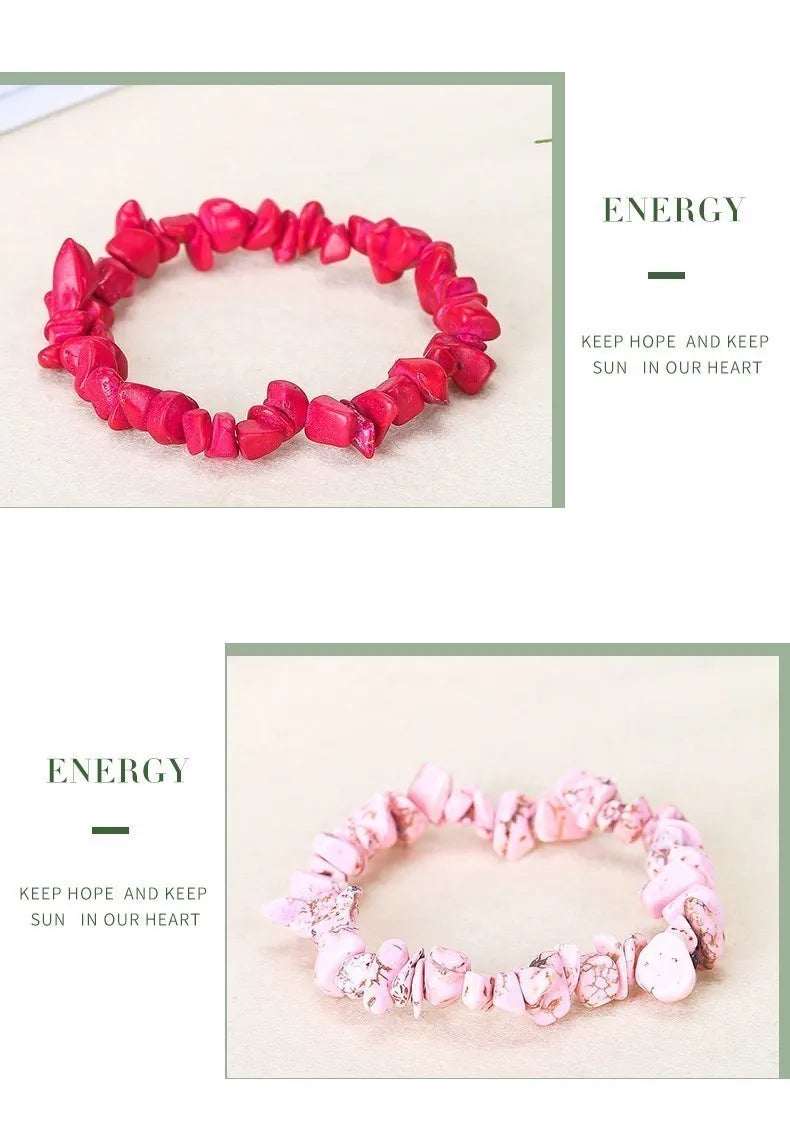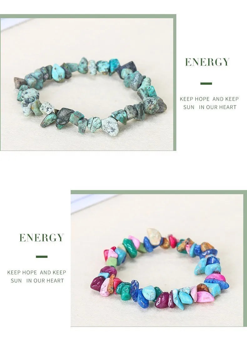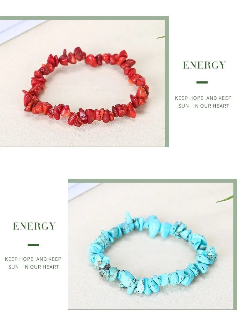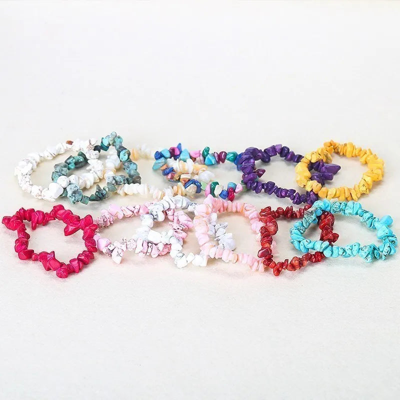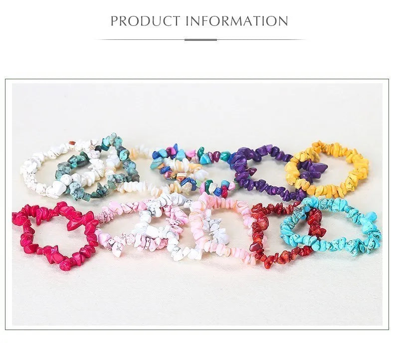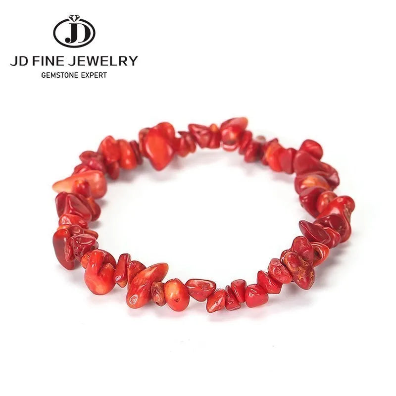JD Irregular Chips Natural Stone Bracelet Coral Turquoise Beads Quartz Gravel Stretch Bracelets Bangles for Women Girls