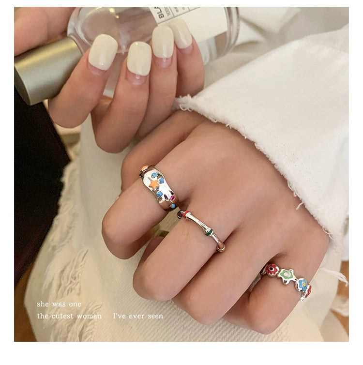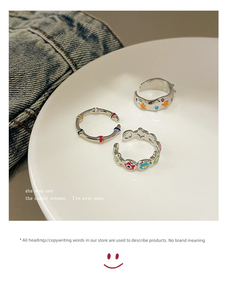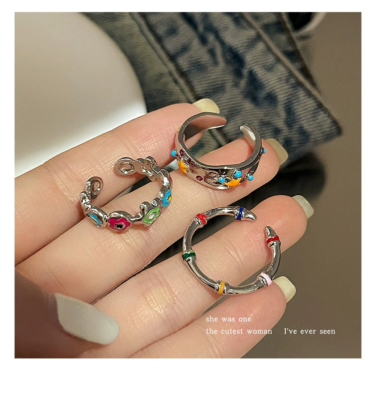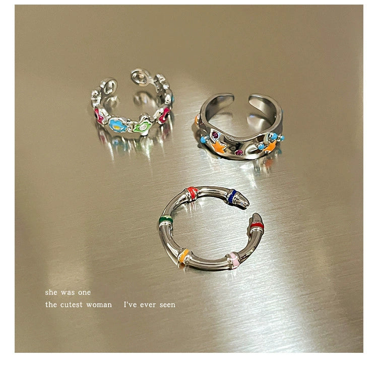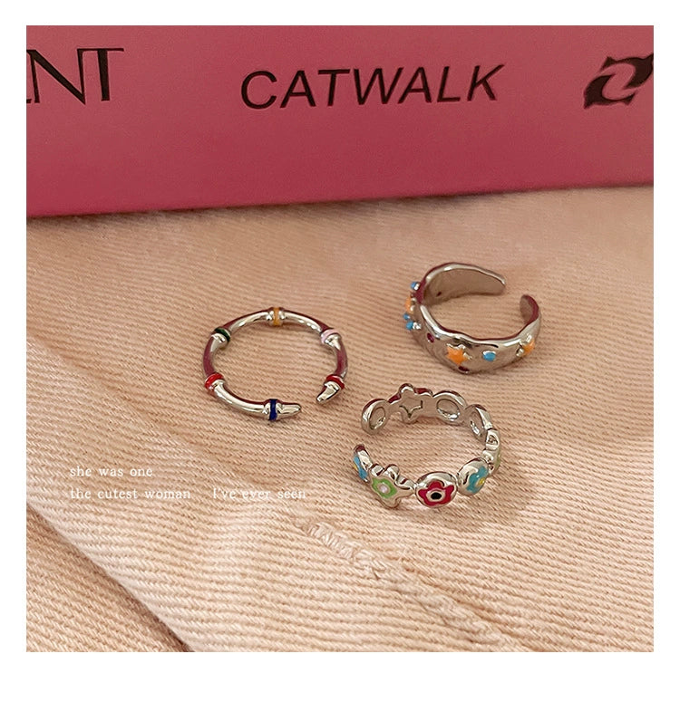 Kancai Colored Drip Glaze XINGX Three-Piece Set Female Ring