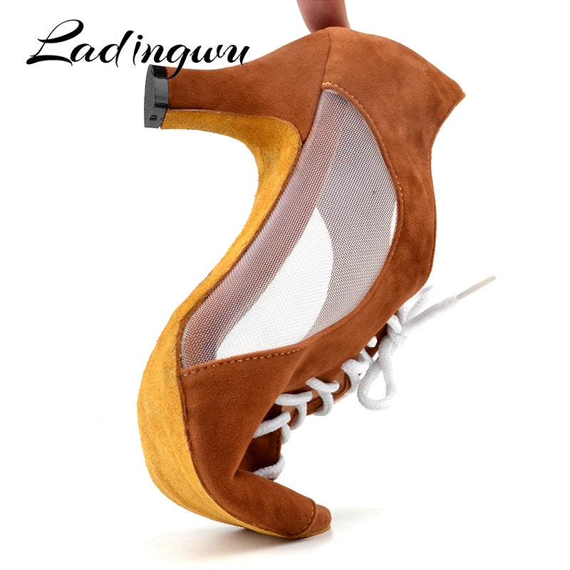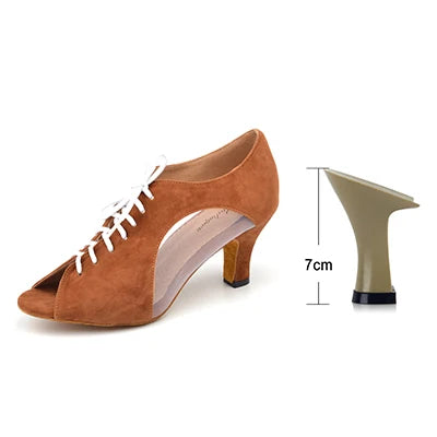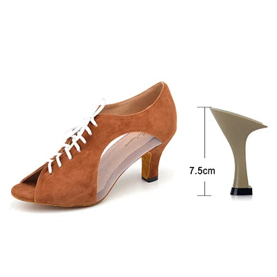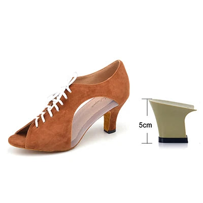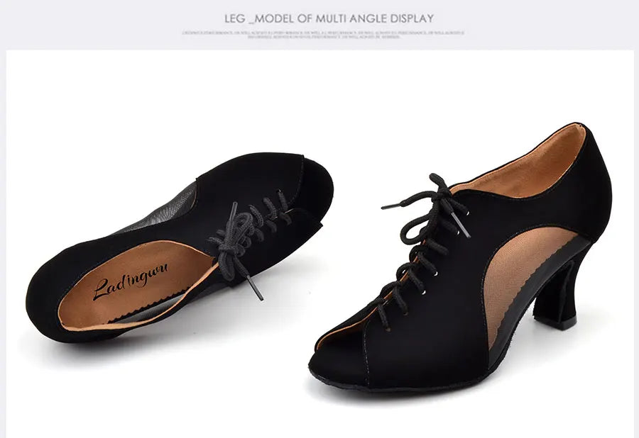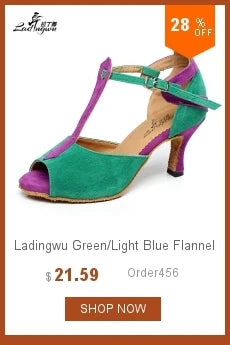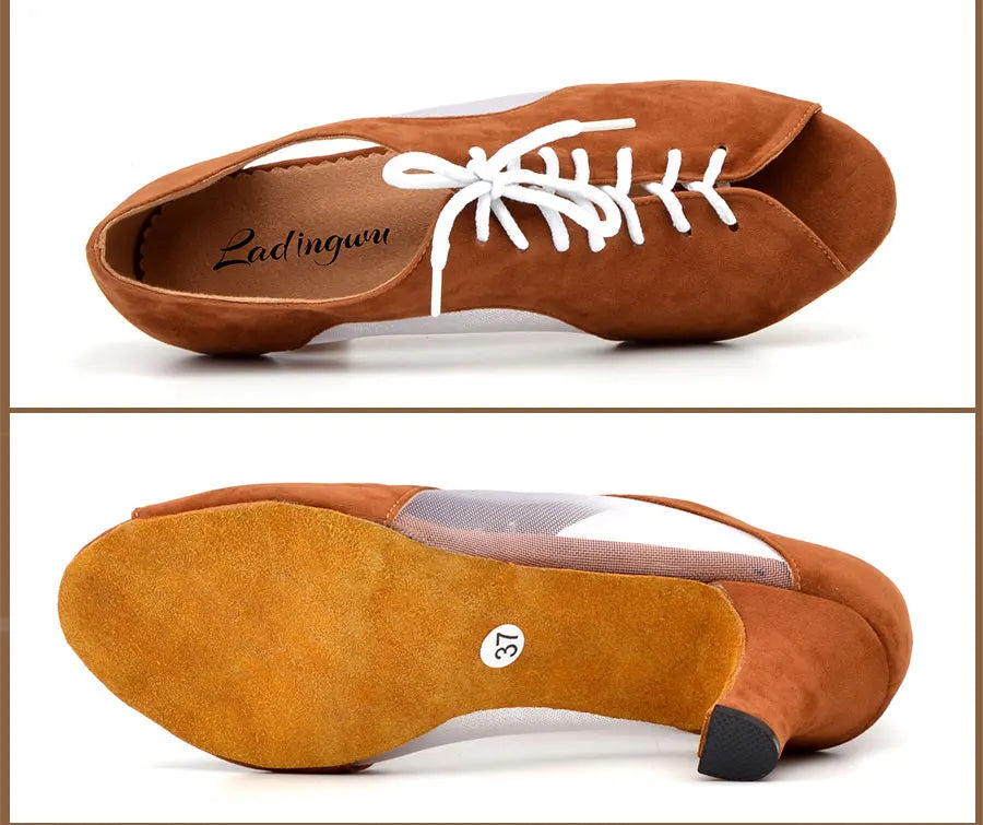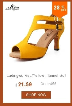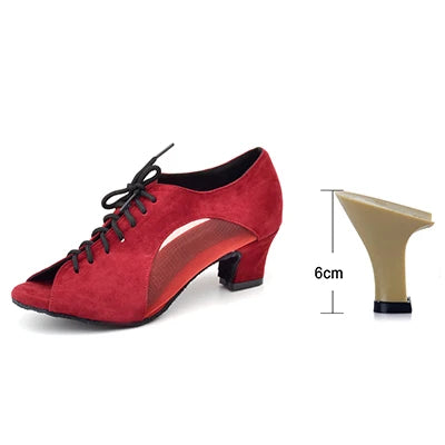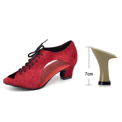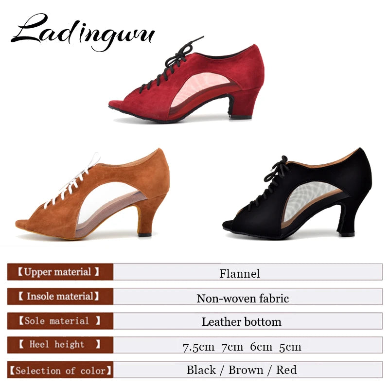 Ladingwu Flannel and Mesh Dance Shoes Latin Woman Salsa Dancing Shoes Red Women Ballroom Shoes Dance Soft Bottom Heel 5/6/7cm