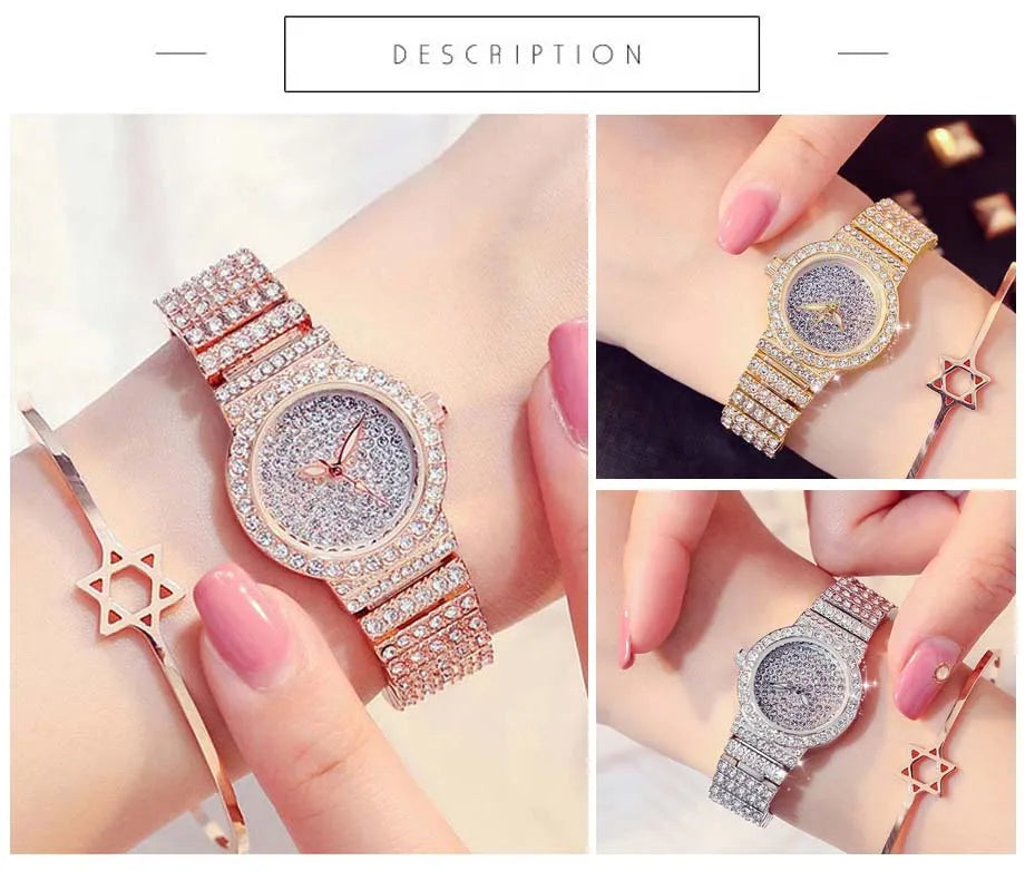 Luxury Brand Quartz Watch Women Watches Luxury 18K Gold Watch Fashion Calender Lady Diamond Watch Female Quartz Wristwatch Hour