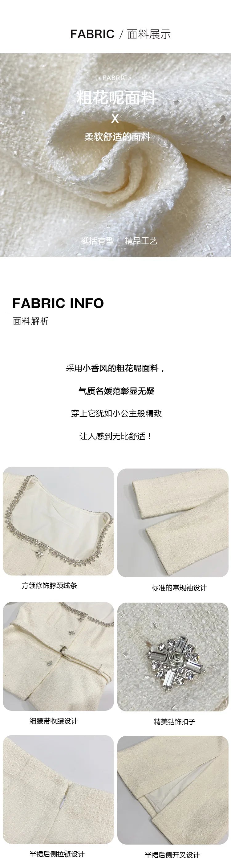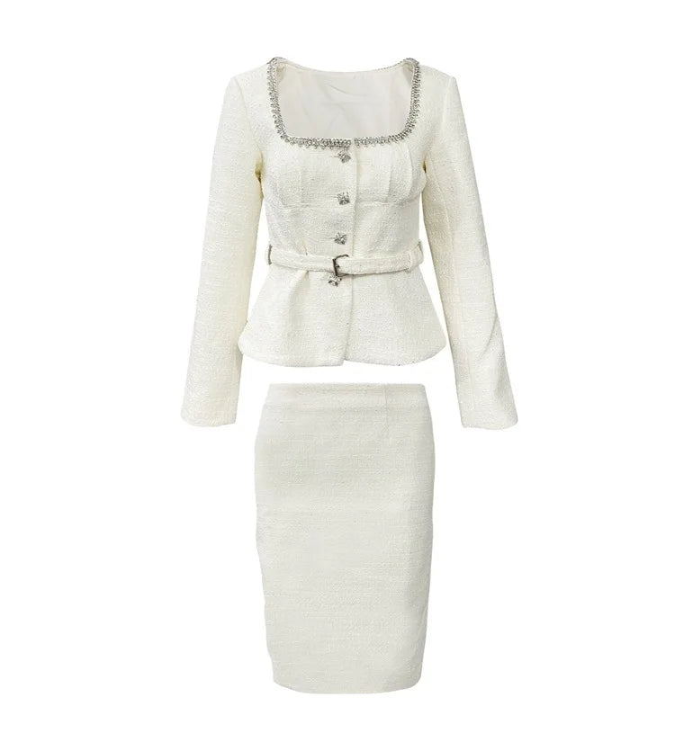Luxury Quality Autumn White Tweed Two Piece Set Women Long Sleeve Beading Jackets Long Skirts Suits Office Lady Work Wear Coats
