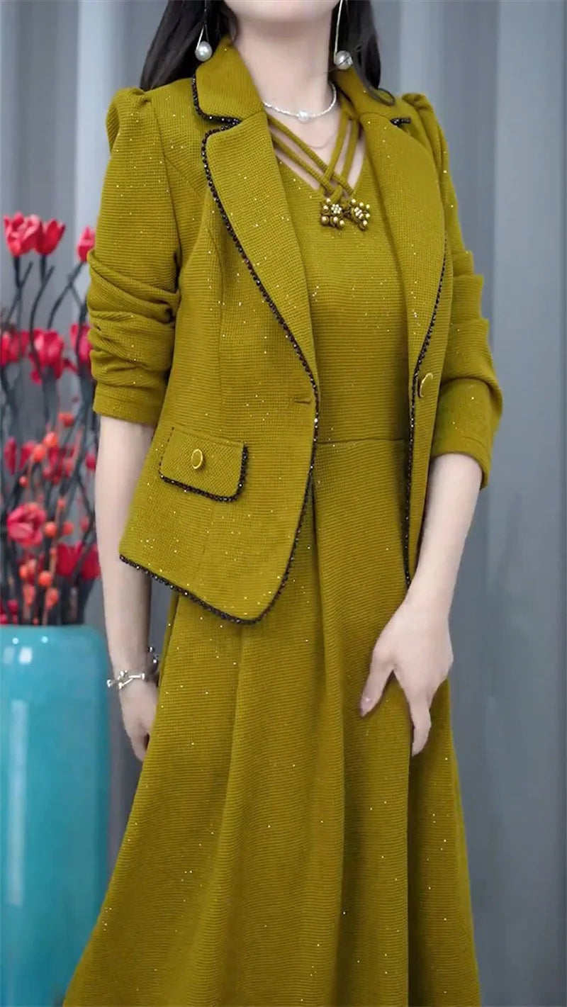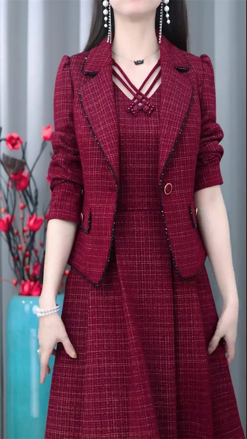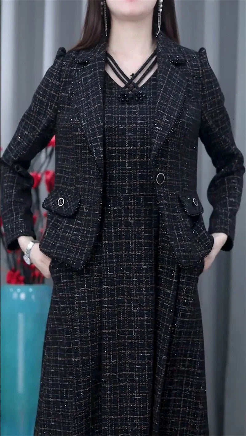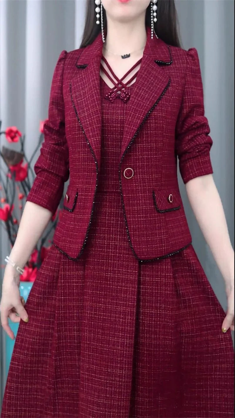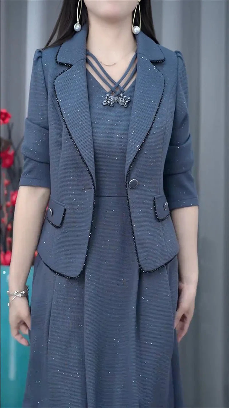 Middle Aged Female Dress Sets Spring Autumn High End Elegant Blazer Coat And Long Dress 2PCS Women OL Temperament Dresses Suit