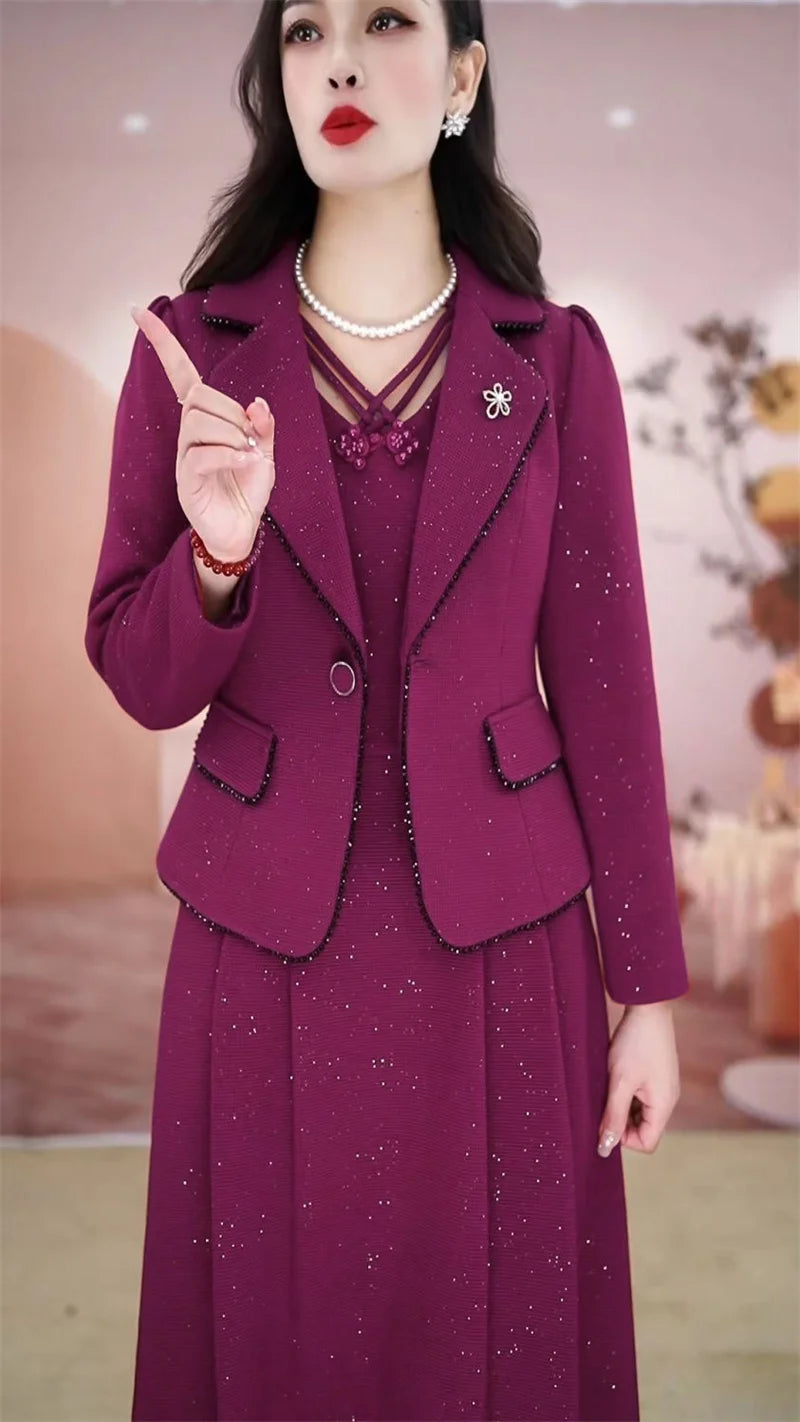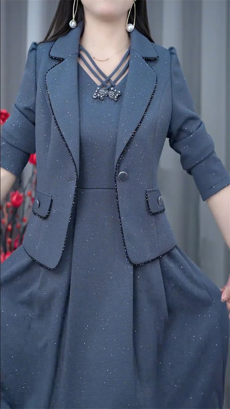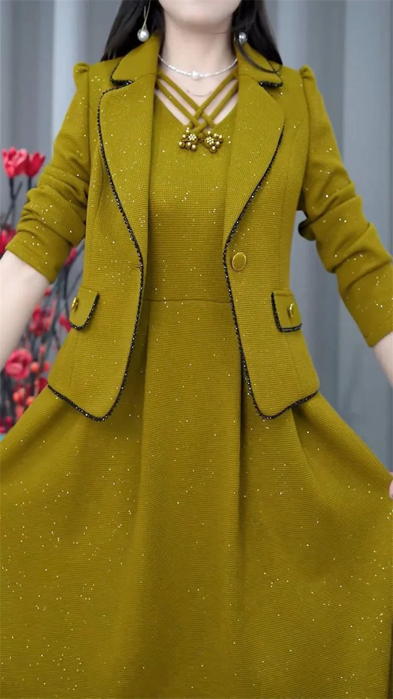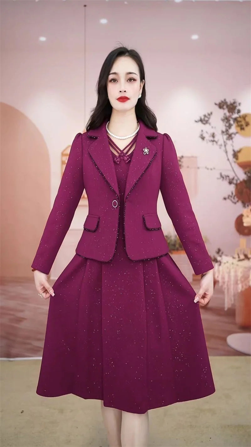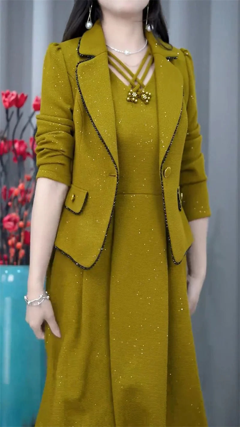 Middle Aged Female Dress Sets Spring Autumn High End Elegant Blazer Coat And Long Dress 2PCS Women OL Temperament Dresses Suit