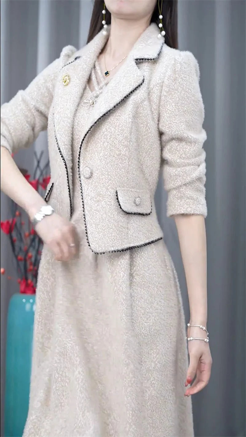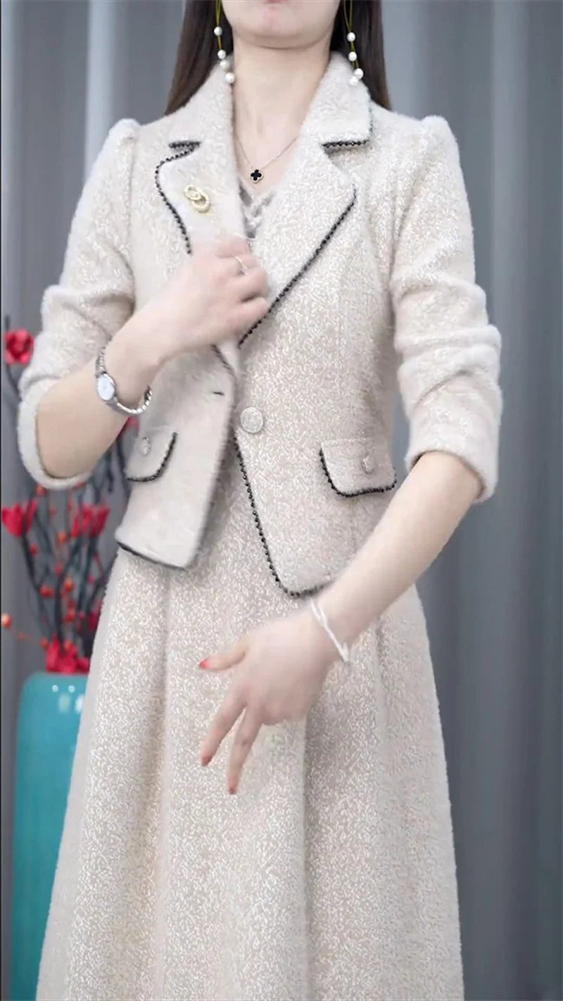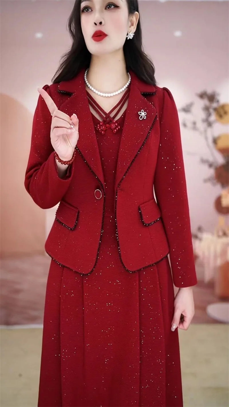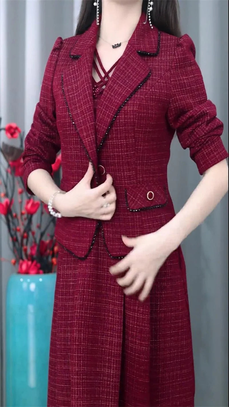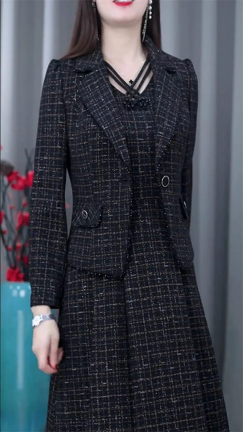 Middle Aged Female Dress Sets Spring Autumn High End Elegant Blazer Coat And Long Dress 2PCS Women OL Temperament Dresses Suit