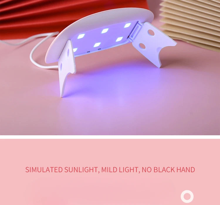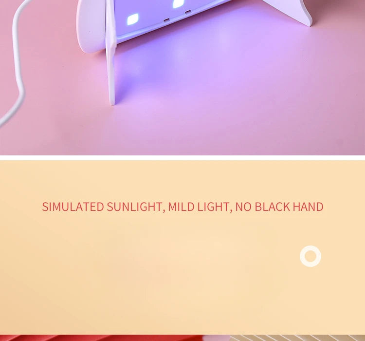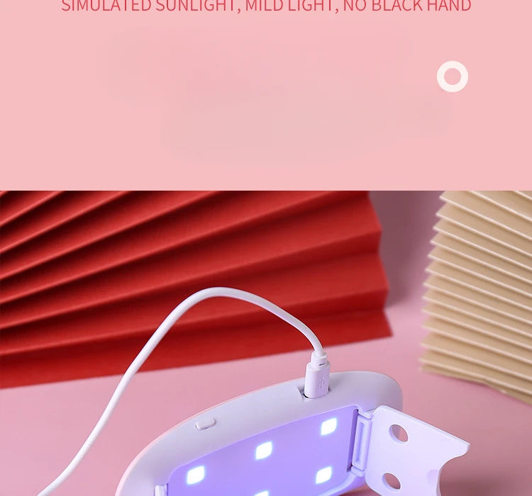 The product is a portable designed LED nail lamp that can quickly cure UV nail glue/extension glue /LED nail glue on the go or wherever you need it