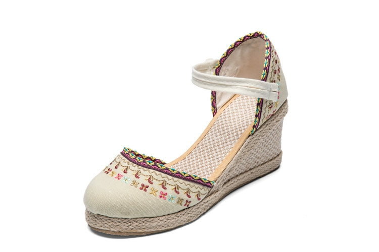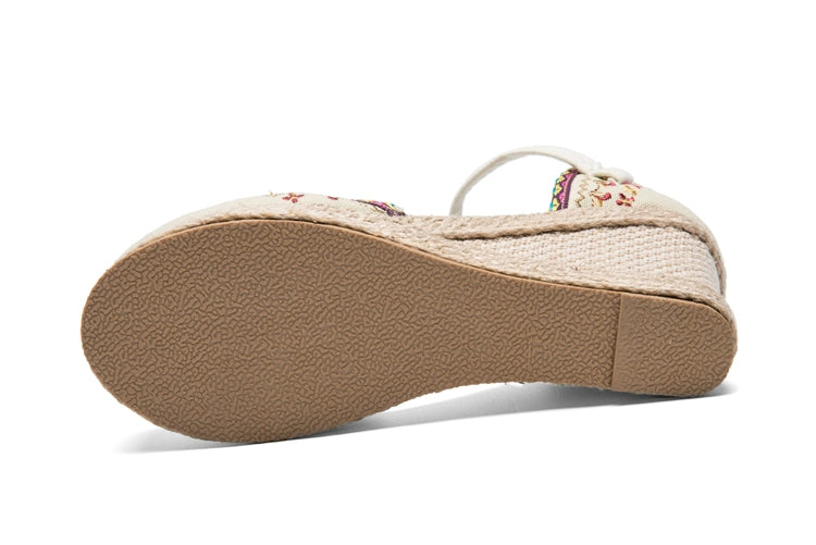 Old Beijing Cloth Shoes Spring Summer Wedge Ethnic Style Sandals