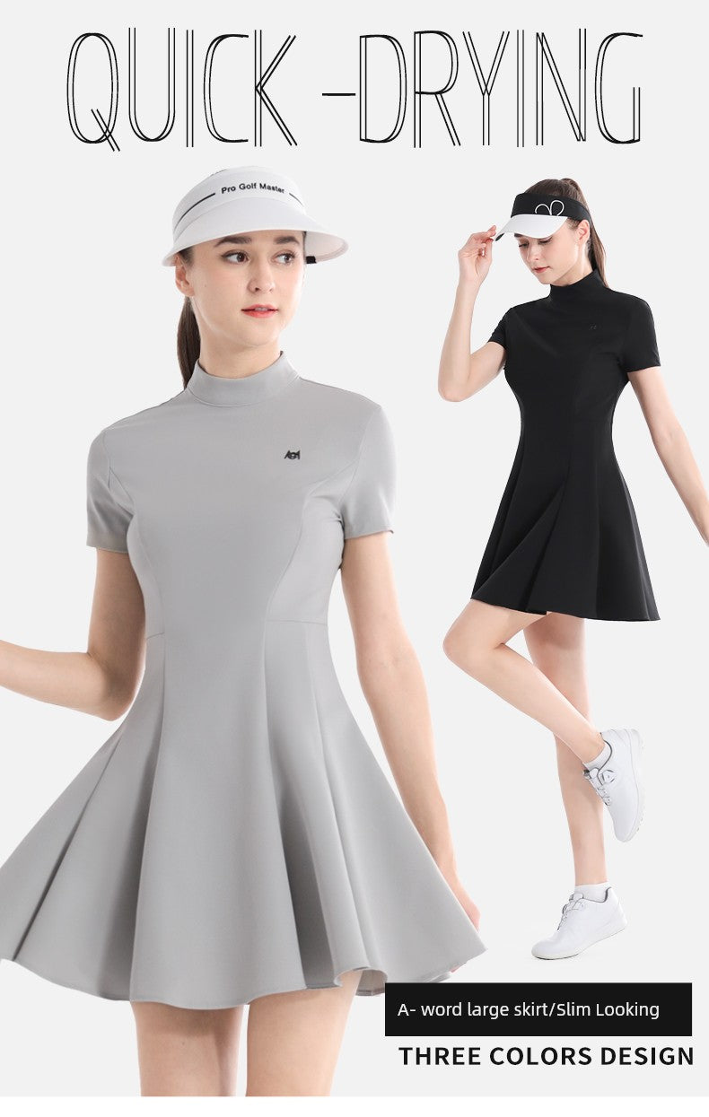 PGM Summer Golf Women's Slim Fit Waist-Controlled Slimming A- line Dress Short Sleeve Women's Dress Suit K-style Golf Clothing