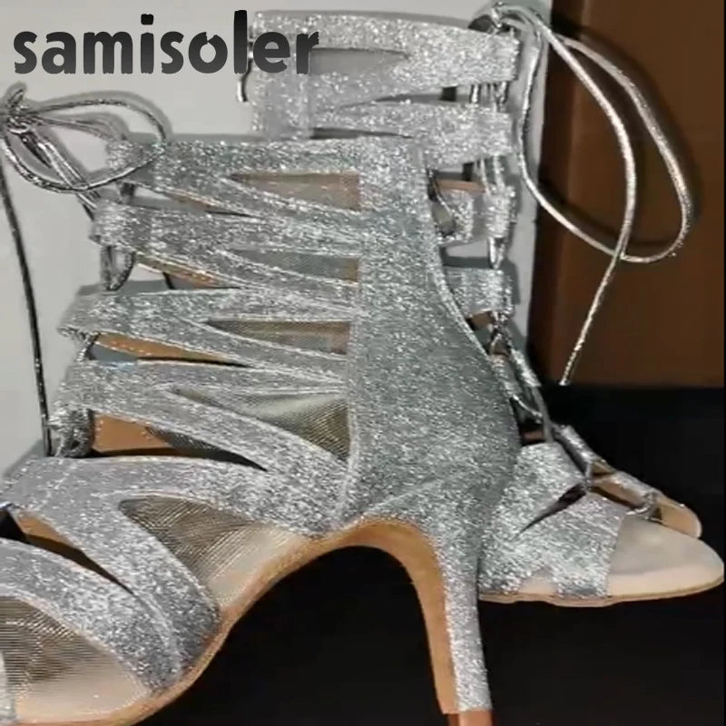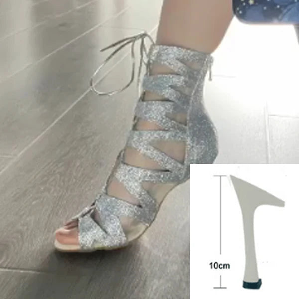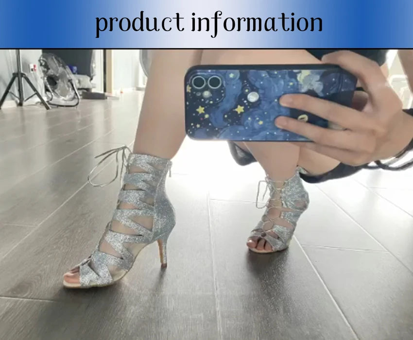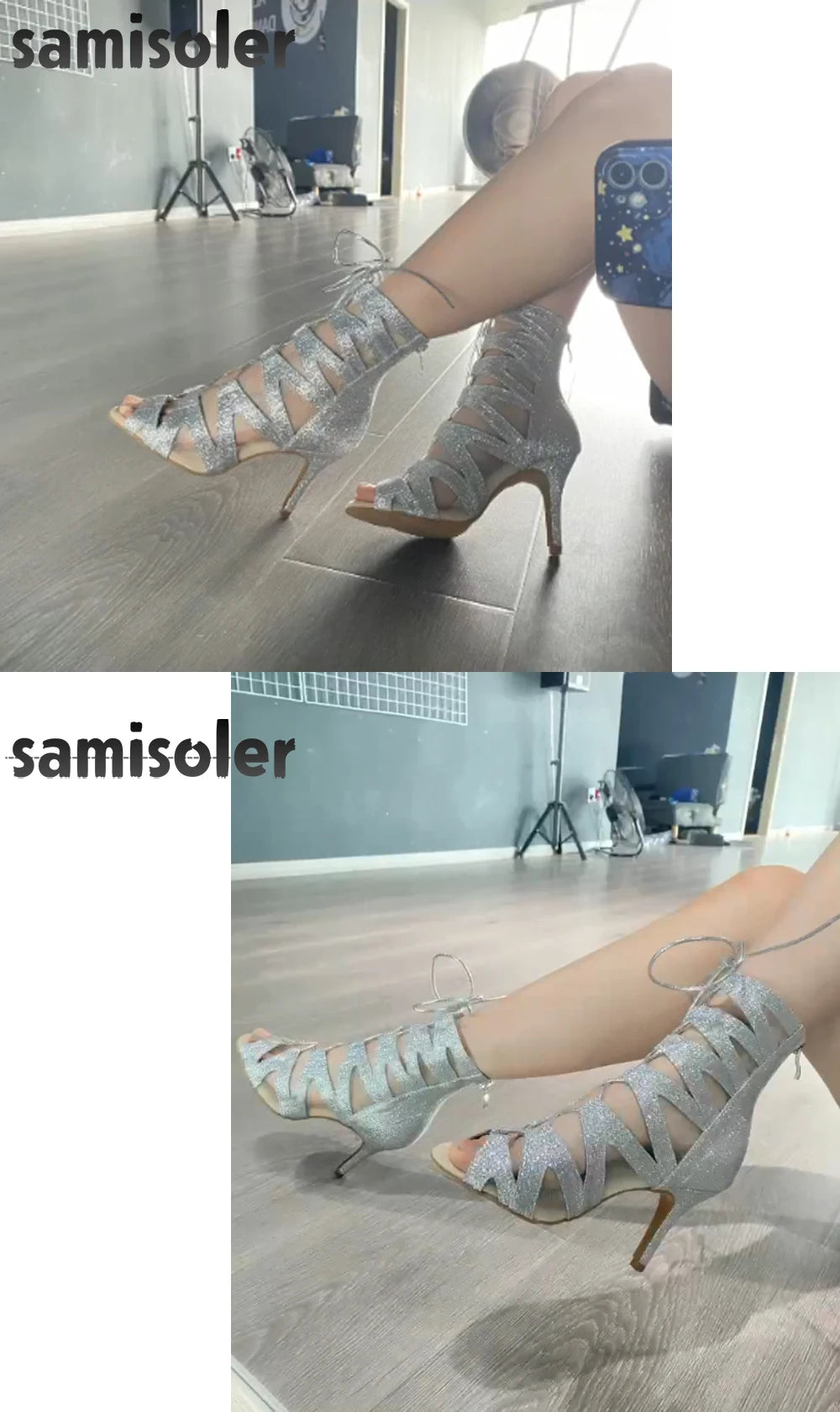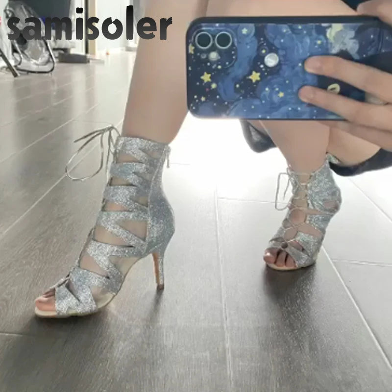 Samisoler High top dance shoes women's Latin jazz dance shoes adult hollowed out dance shoes ballroom dance shoes cool boots