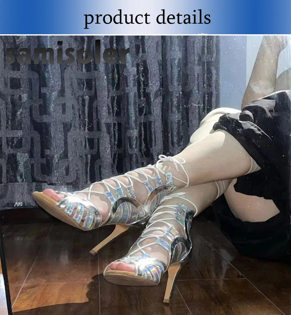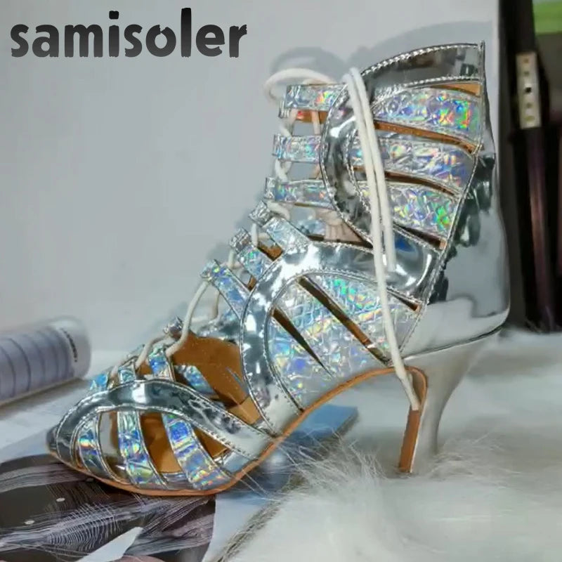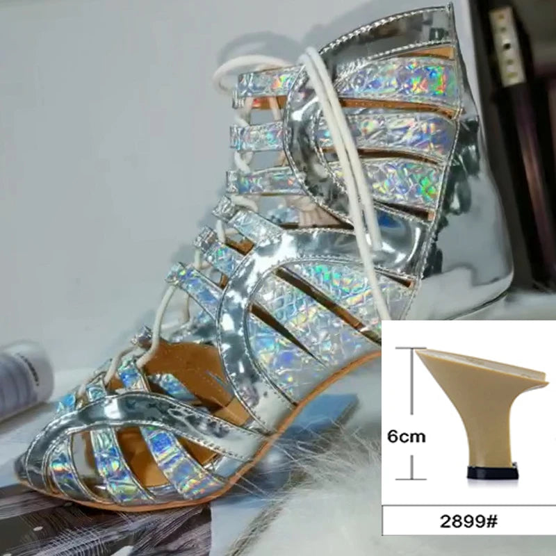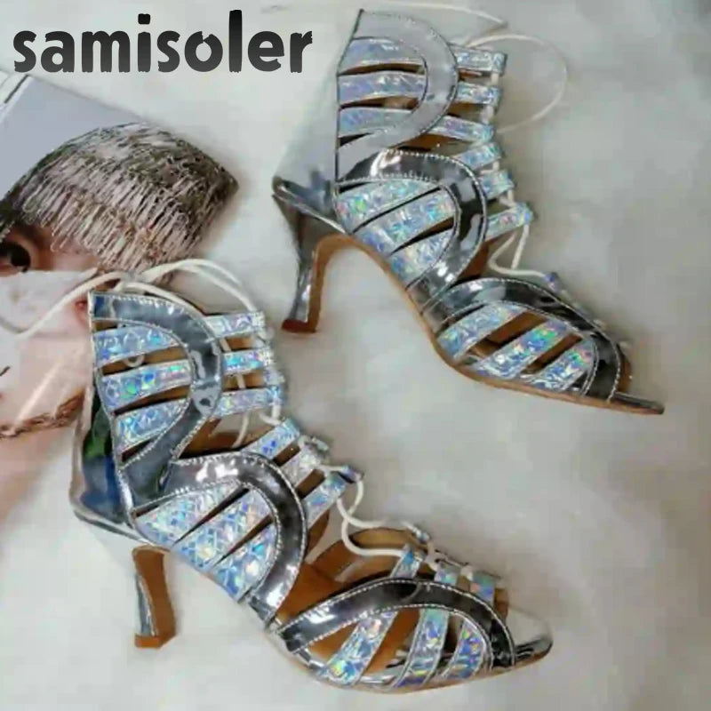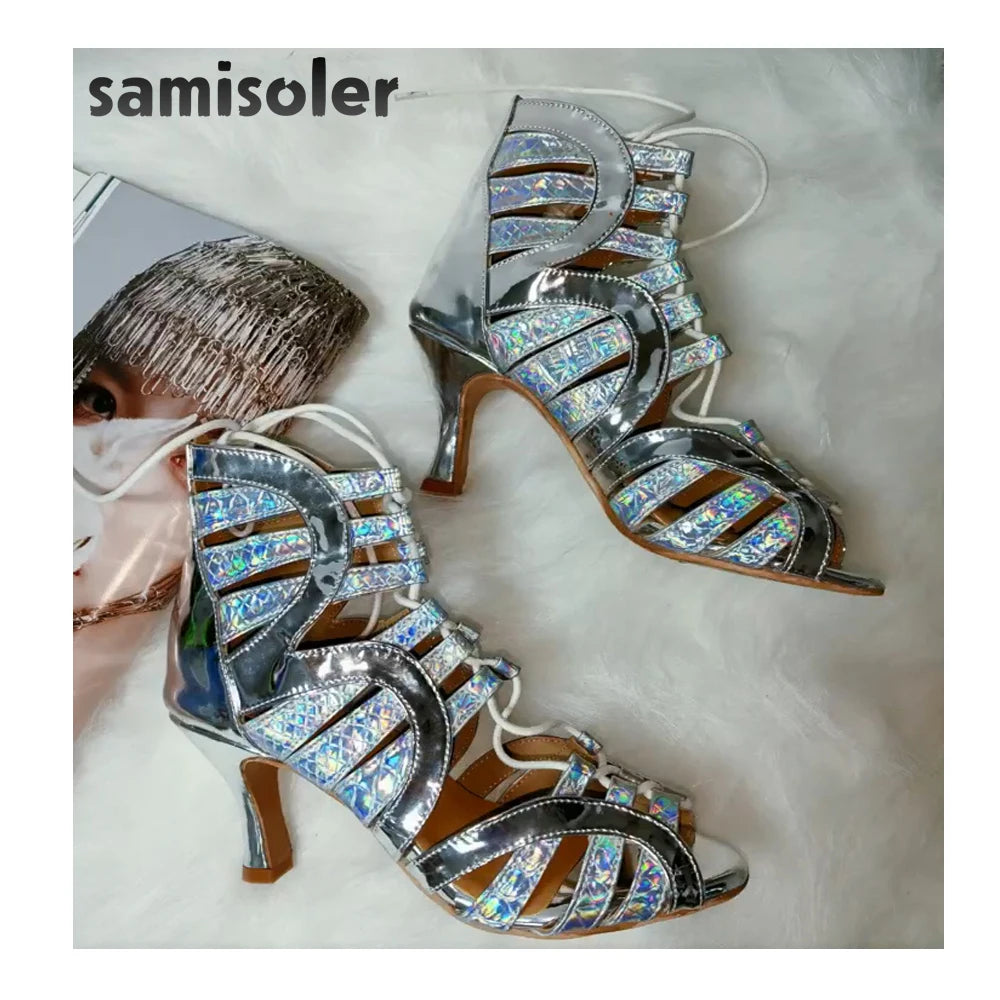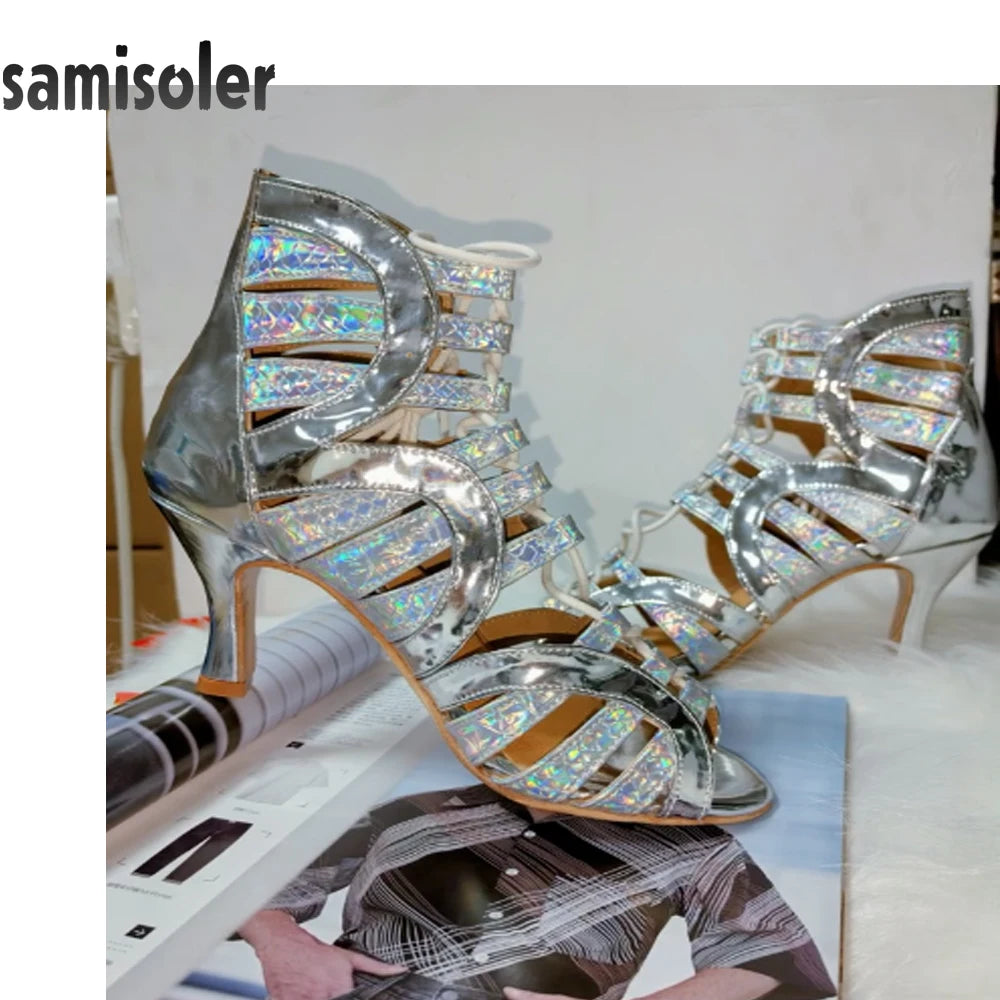 Samisoler Lace up glitter PU cool boots fashion dance shoes jazz dance shoes steel tube dance shoes Latin dance shoes