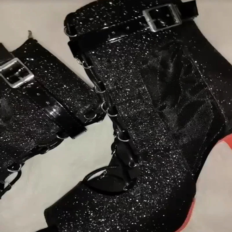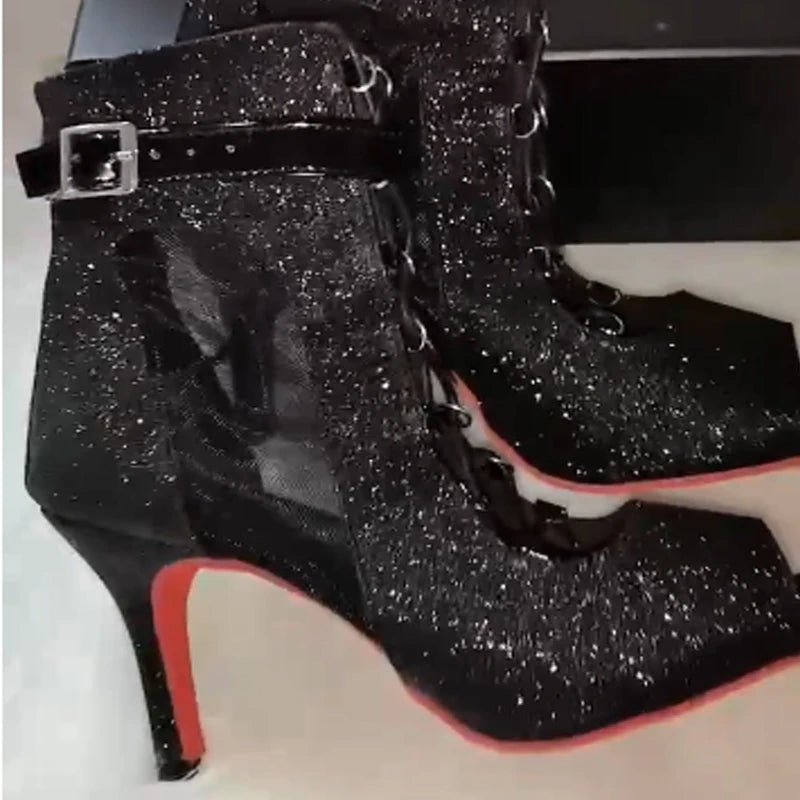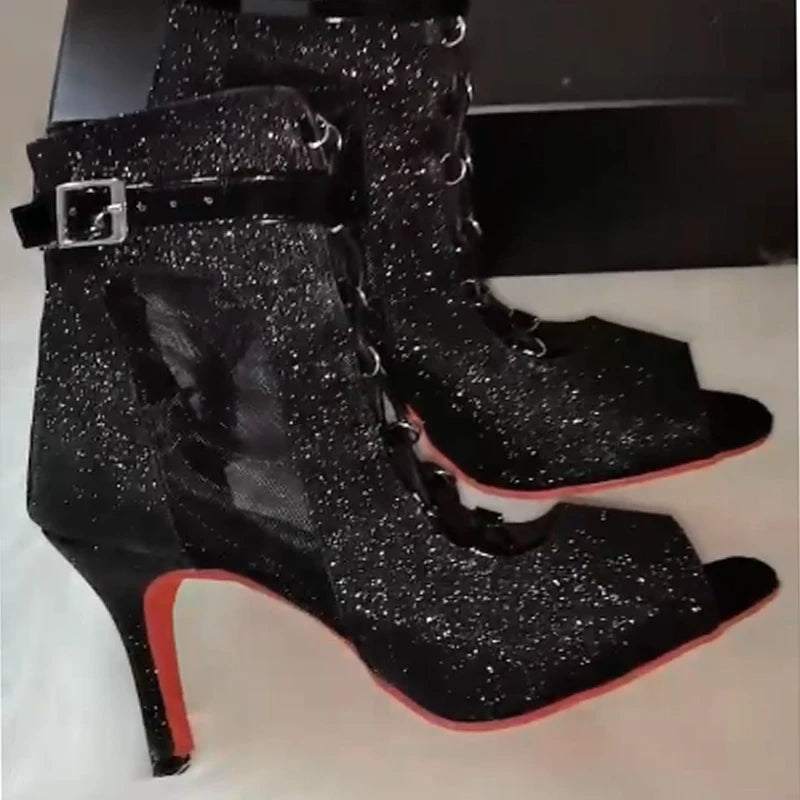 Samisoler Strap jazz dance shoes, high heels with mesh, cool boots, fish mouth, indoor soft sole, high top Latin dance shoes
