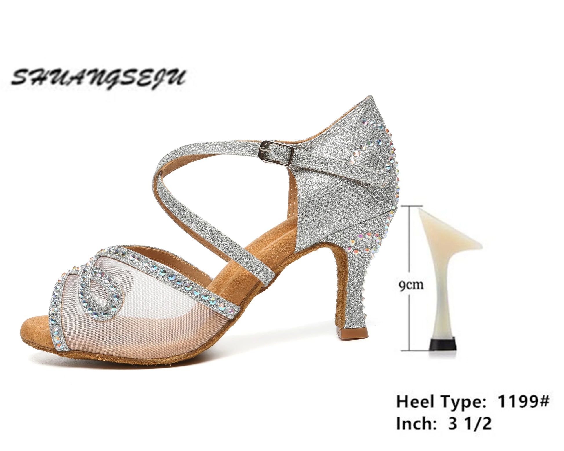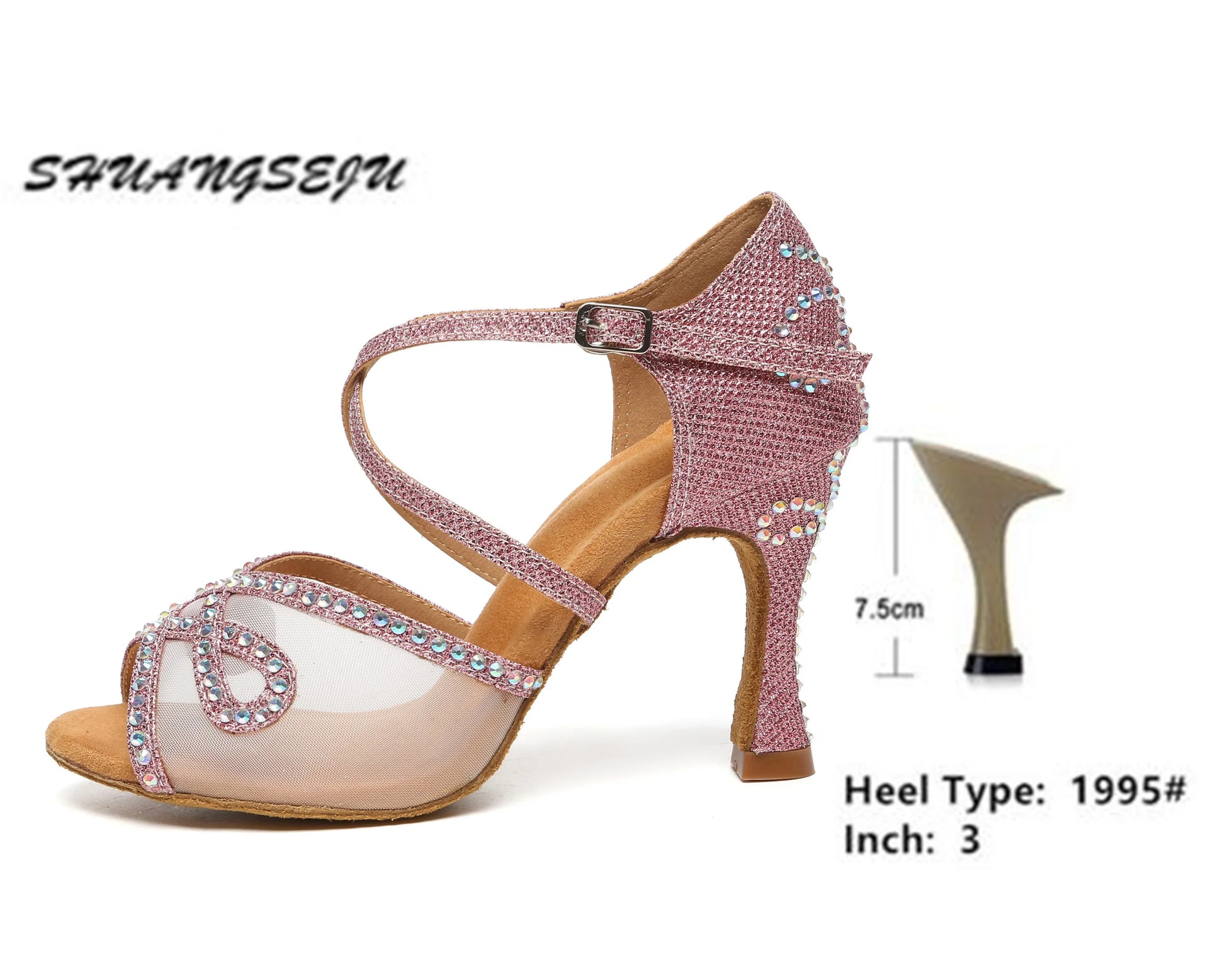 SHUANGSEJU New adult Latin dance Shoes Women Salsa Fashion shiny glass slipper Bachata performance shoes Black Everything 6-10cm