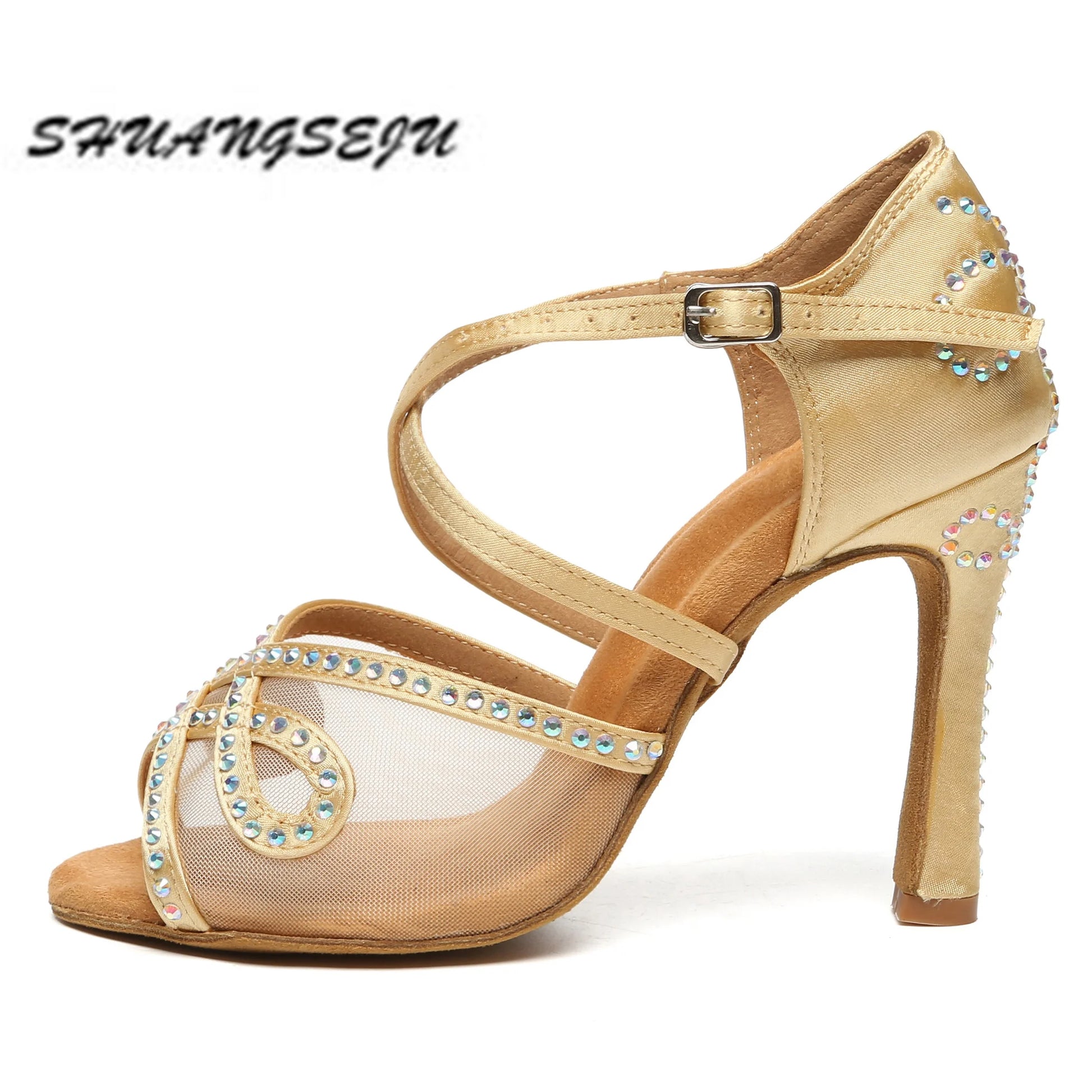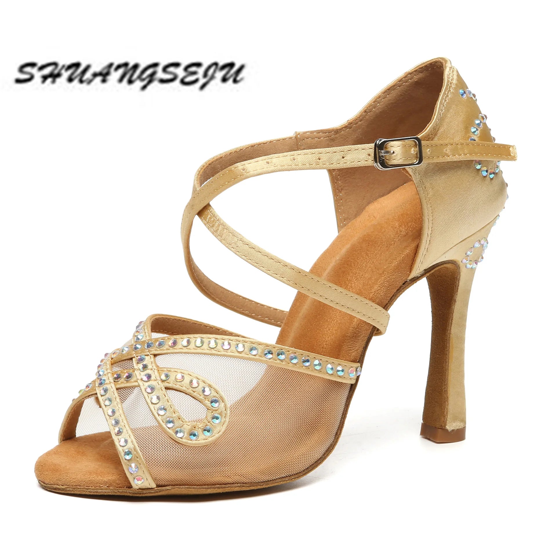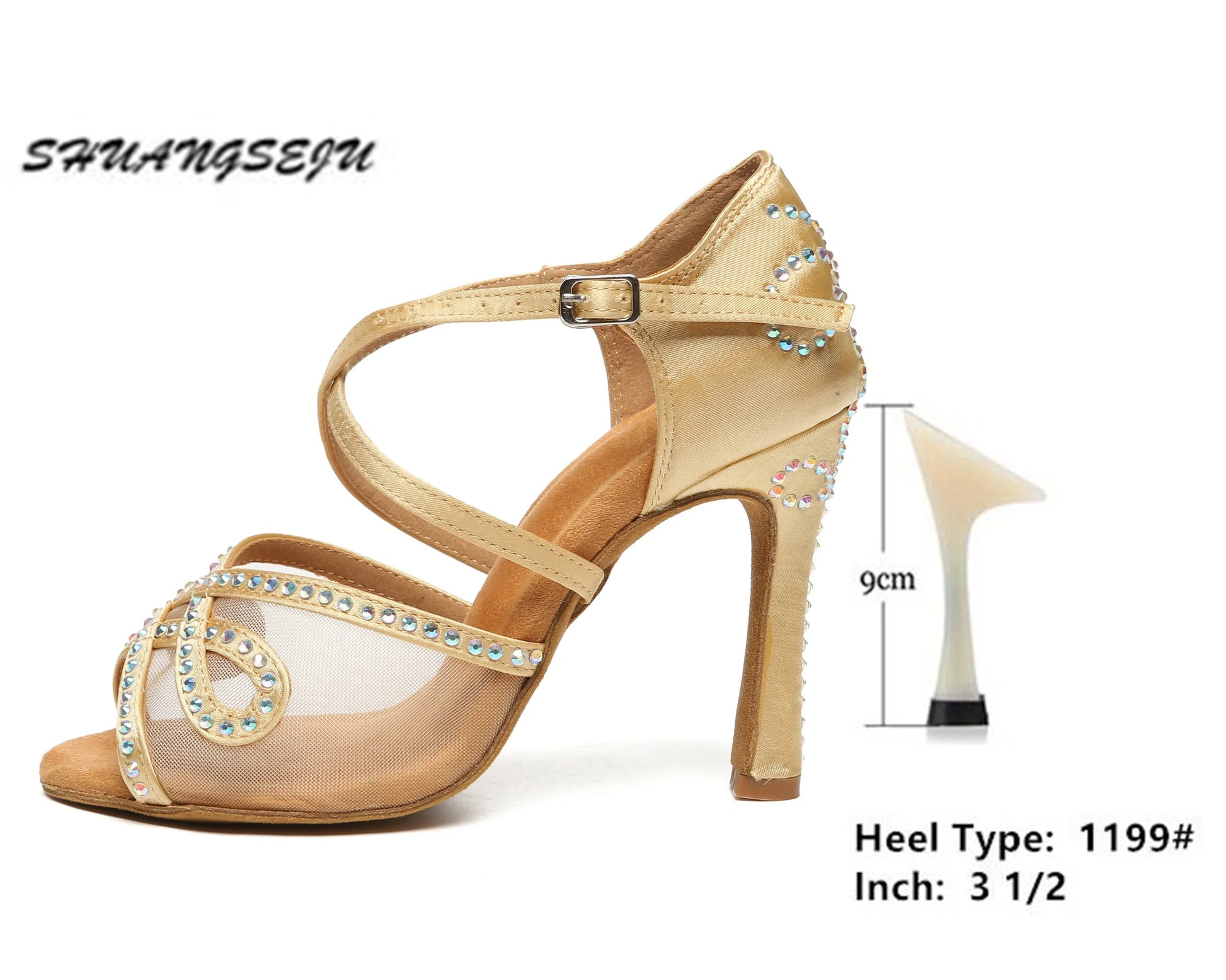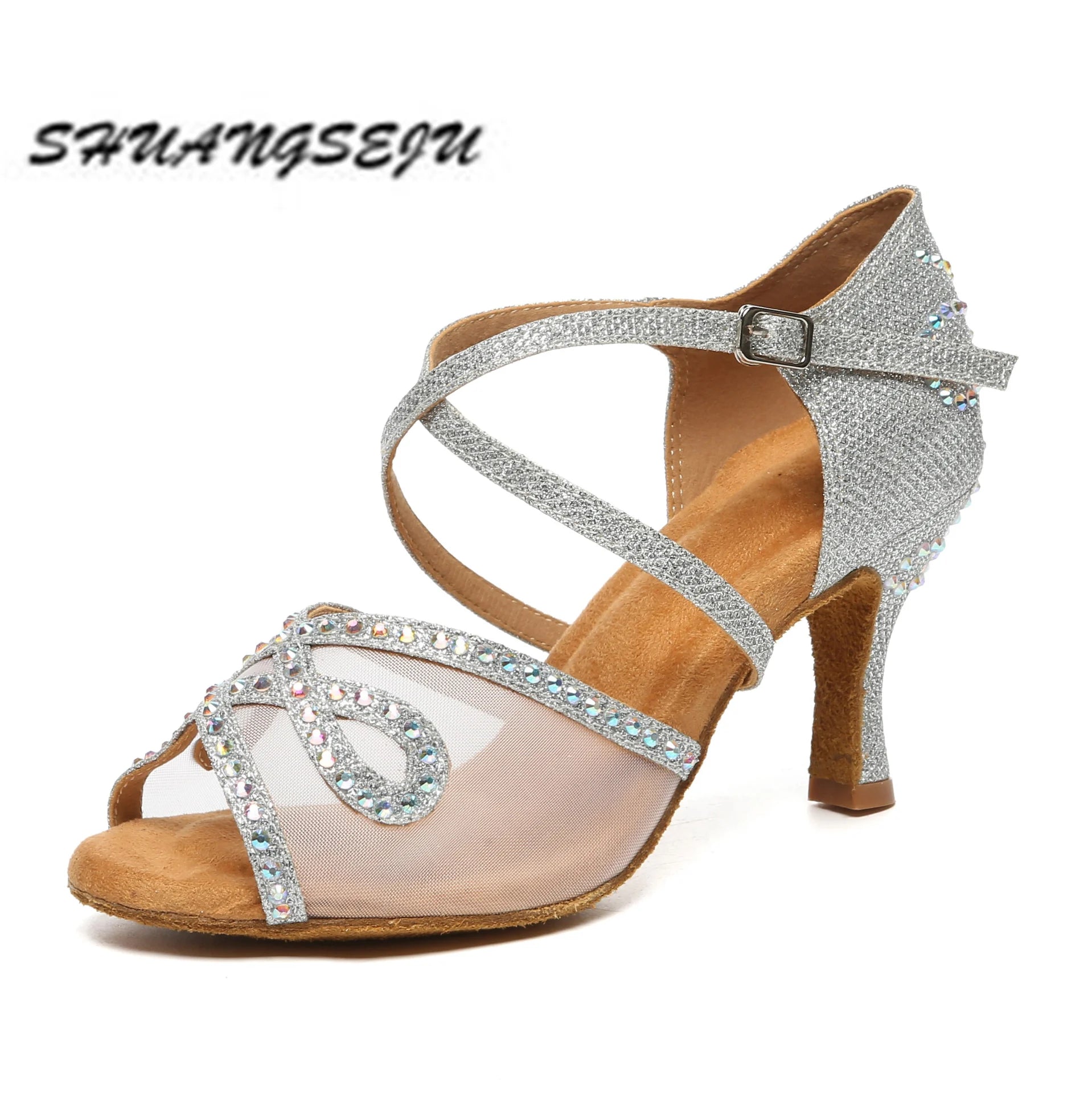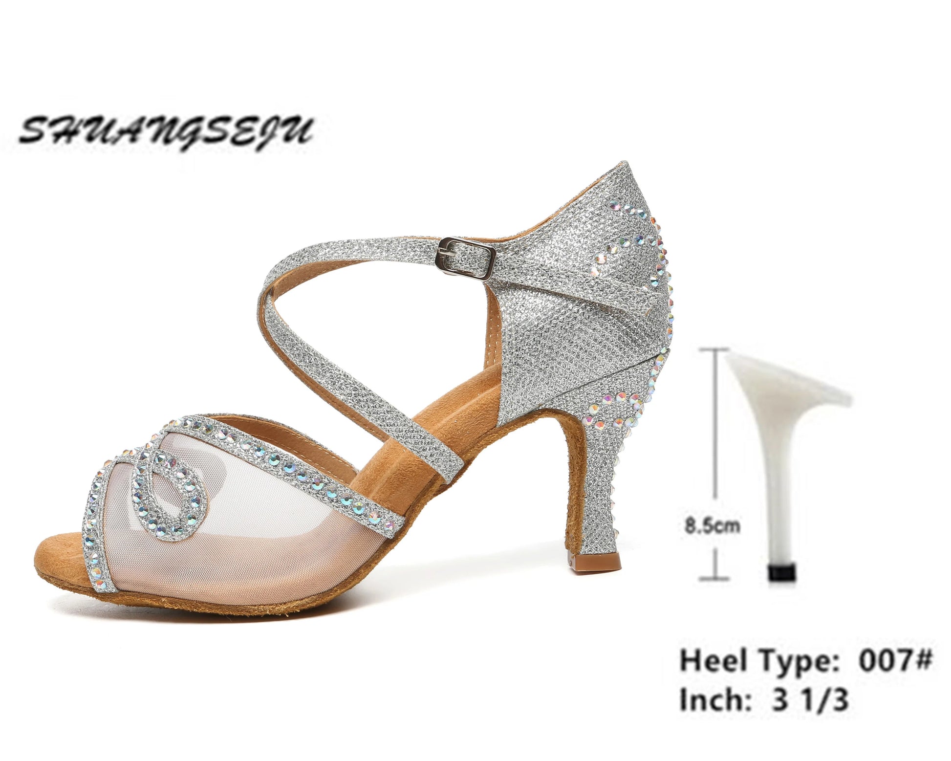 SHUANGSEJU New adult Latin dance Shoes Women Salsa Fashion shiny glass slipper Bachata performance shoes Black Everything 6-10cm